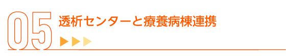 透析センター、療養病棟の連携(合同カンファレンス、勉強会)が充実しており、患者様の状態把握、透析治療、入院生活の質向上に繋げます。